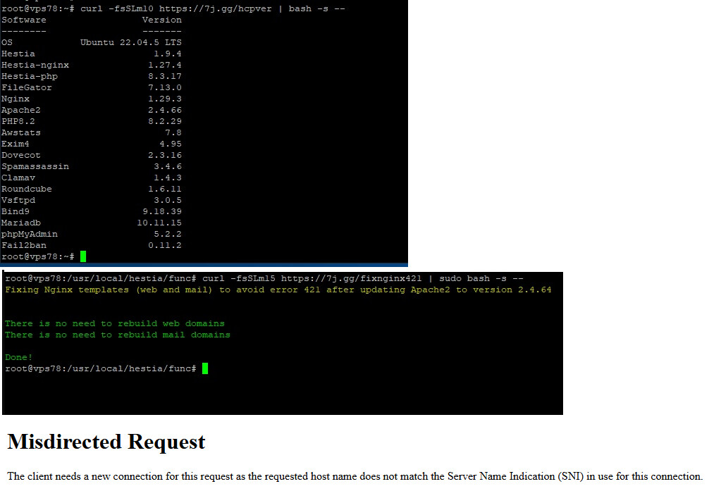 After that moment the email page won’t open: domain.com it’s ok, mail.domain.com not ok: Misdirected Request, error421.