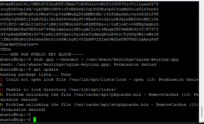ubuntu@hcp:~$ curl -s https://nginx.org/keys/nginx_signing.key | sudo gpg --dearmor > /usr/share/keyrings/nginx-keyring.gpg