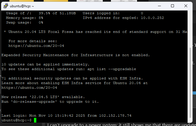 The problem is The problem is that installing the remaining updates is not possible; there are 10 updates left. 10 Package It won’t install… Is the problem with system 20.04, which is no longer supported by the platform?