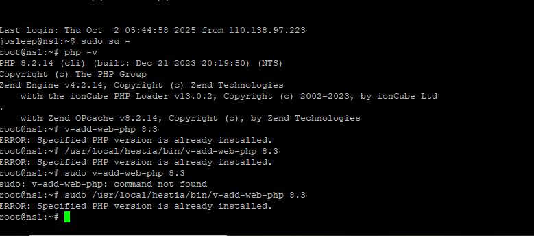 once again: login as root or a user, which has sudo rights (hestia admin user).