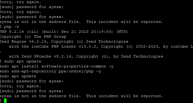 According to the error message you shared, you are trying to use sudo with a user who is not in the sudoers group. You need to use an account that has the appropriate permissions.