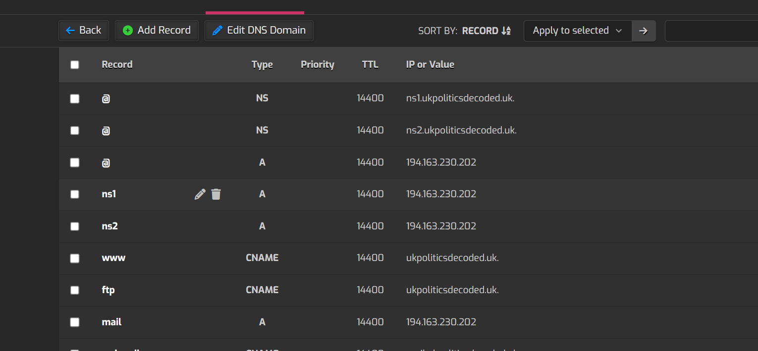 Created the domain with email and DNS checked.