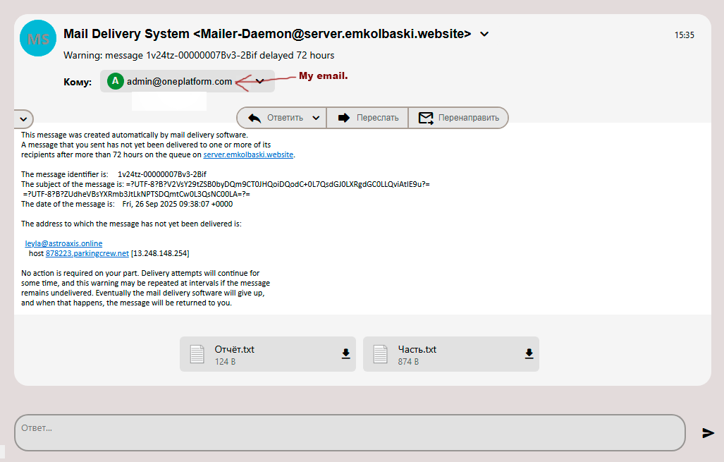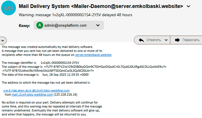 2025-09-29 20:44:04 1v3OTM-00000006ol2-1sWS => admin <[email protected]> R=localuser T=local_delivery