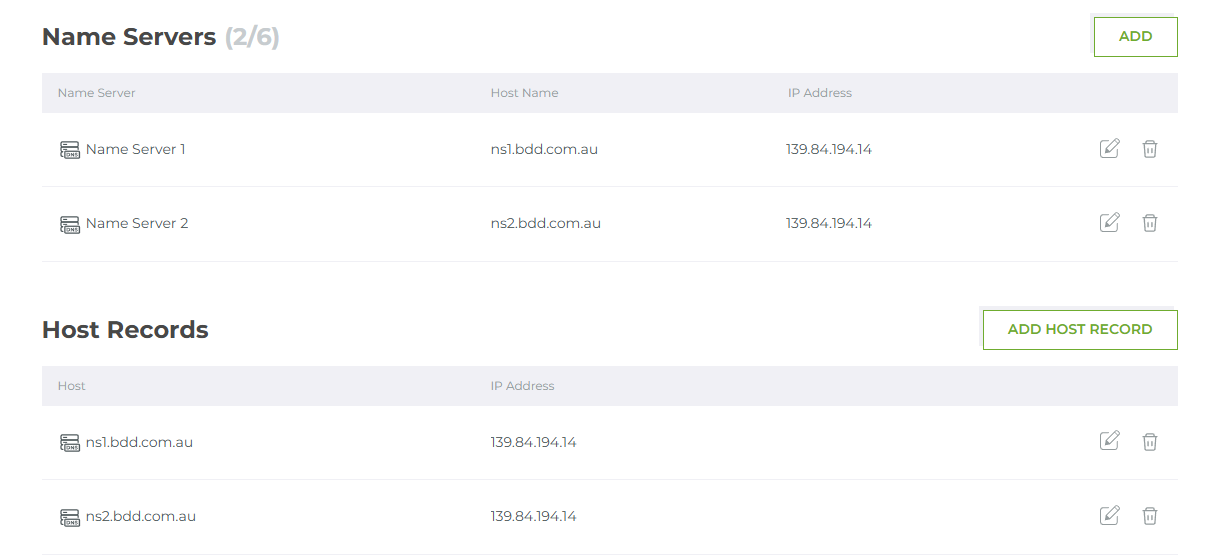 the new ones; ns1.bdd.com.au and ns2.bdd.com.au. You must also add the A records for those new ns subdomains.