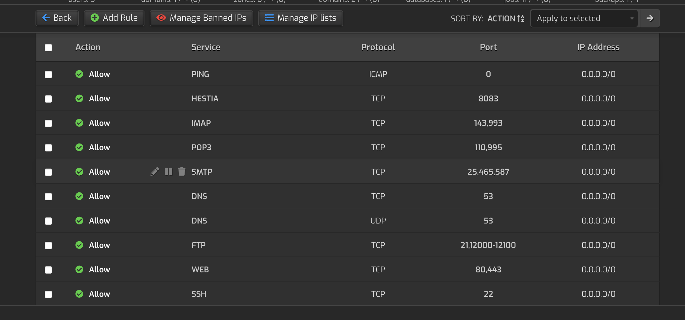 In any case, with this file (/usr/local/hestia/data/firewall/rules.conf) I shouldn’t do anything, right? I only see that it is fine and the only thing that I see differently is that my comments are in lowercase, nothing more (and the ssh port -it’s diferent- and a new rule for zabbix -10050-).